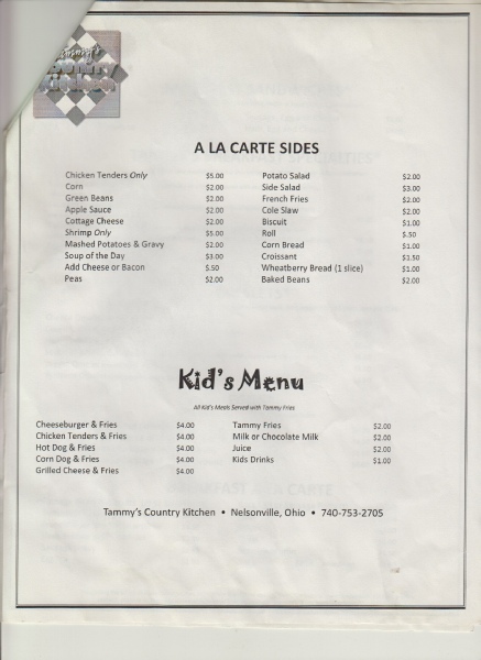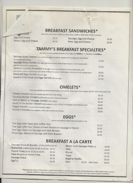 Tammy’s Menu page 1 page 2 page 3 page 4